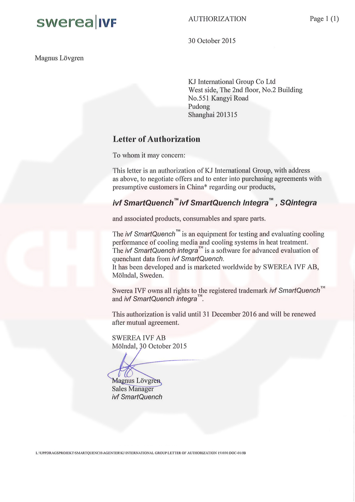 瑞典IVF代理證書(shū)